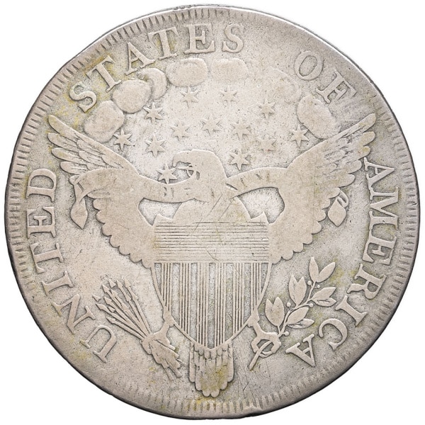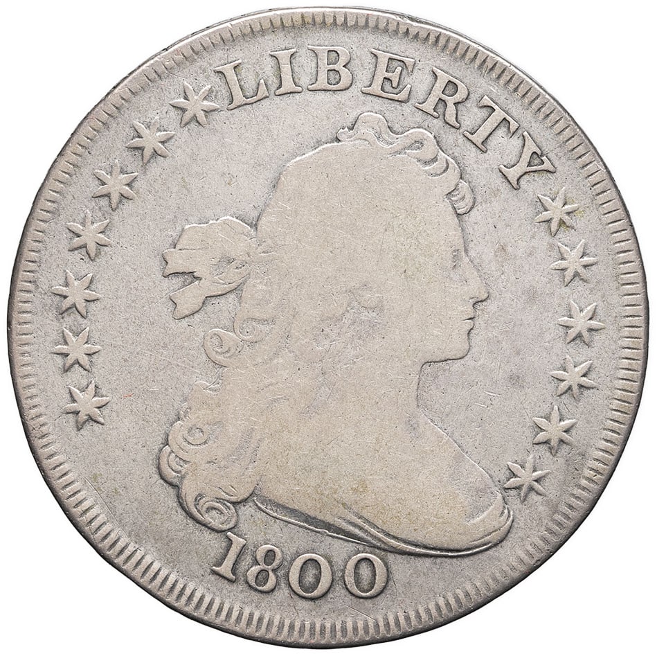 République fédérale des États-Unis d’Amérique (1776-à nos jours). Dollar, buste drapé, aigle héraldique (draped bust dollar, heraldic eagle) 1800, Philadelphie.