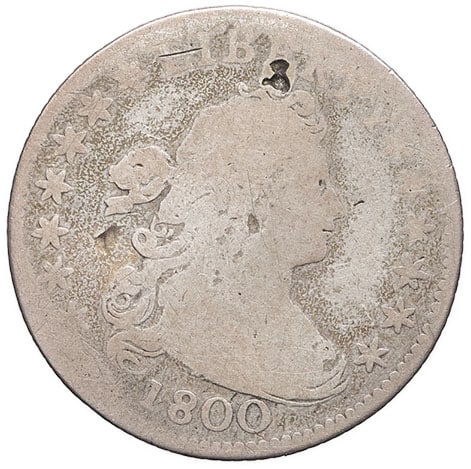 - UNITED STATES OF AMERICA République fédérale des États-Unis d’Amérique (1776-à nos jours). Dime, buste drapé, aigle héraldique (draped bust dime, heraldic eagle) 1800, Philadelphie.