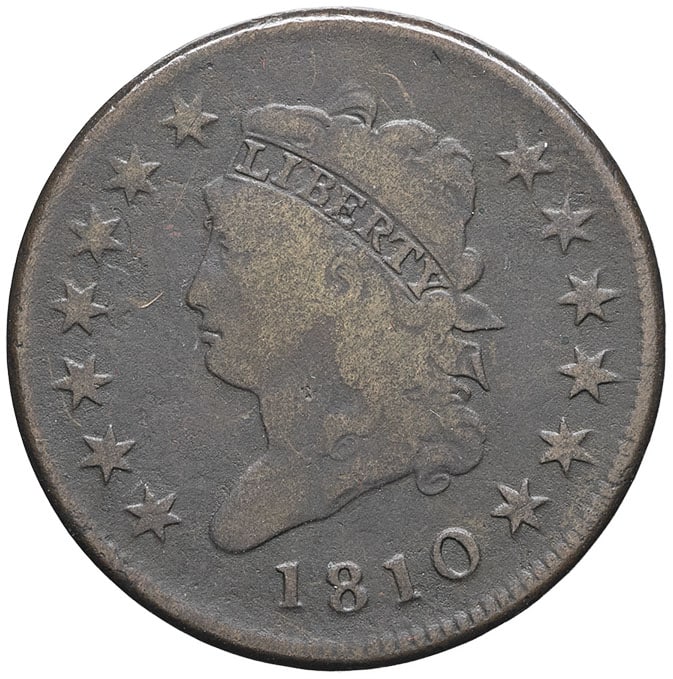 - UNITED STATES OF AMERICA République fédérale des États-Unis d’Amérique (1776-à nos jours). One cent, tête classique (classic head cent) 1810, Philadelphie.