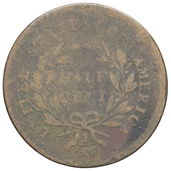 République fédérale des États-Unis d’Amérique (1776-à nos jours). Half cent, Liberté au bonnet (Liberty cap half cent) 1795, Philadelphie.
