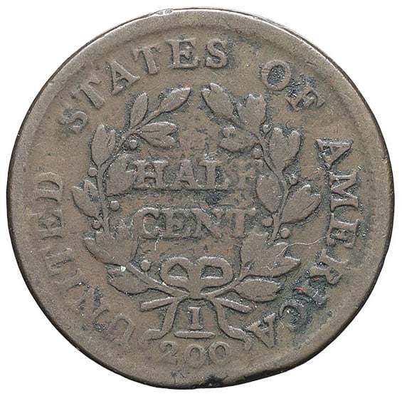 - UNITED STATES OF AMERICA République fédérale des États-Unis d’Amérique (1776-à nos jours). Half cent, buste drapé (draped bust half cent) 1804, Philadelphie.