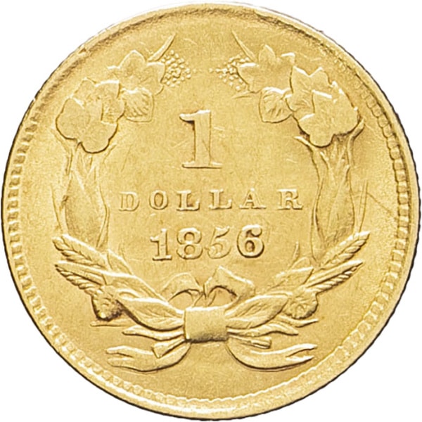 - UNITED STATES OF AMERICA République fédérale des États-Unis d’Amérique (1776-à nos jours). 1 dollar à la tête de princesse indienne 1856, Philadelphie.