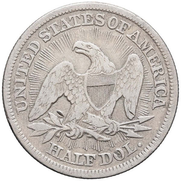 - UNITED STATES OF AMERICA République fédérale des États-Unis d’Amérique (1776-à nos jours). Demi-dollar, Liberté assise, avec flèches et rayons (Liberty seated half dollar, arrows & rays) 1853, Philadelphie.