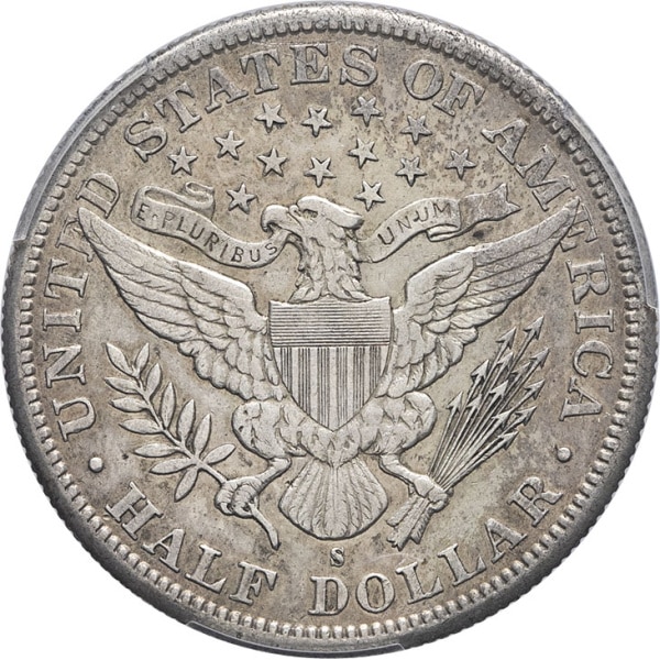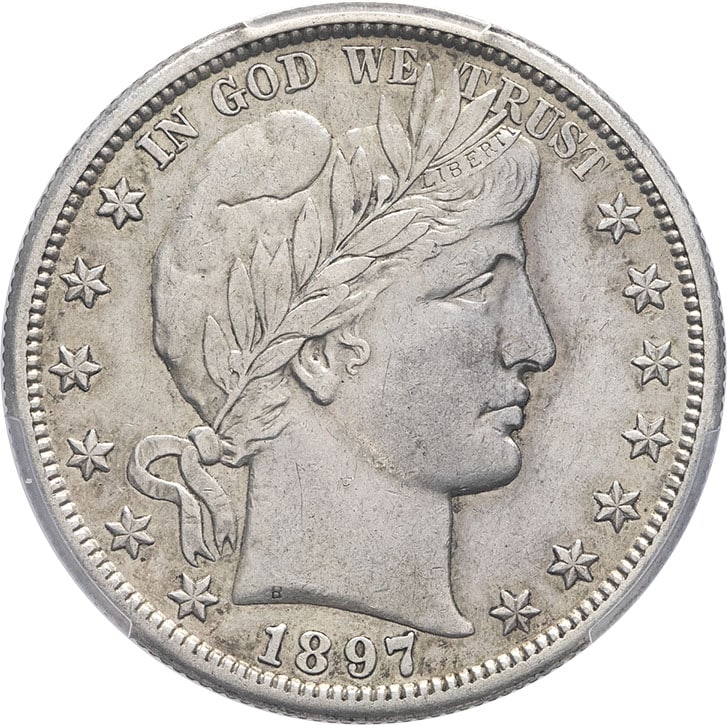 - UNITED STATES OF AMERICA République fédérale des États-Unis d’Amérique (1776-à nos jours). Demi-dollar à la Liberté ou demi-dollar Barber (Barber half dollar) 1897, S, San Francisco.