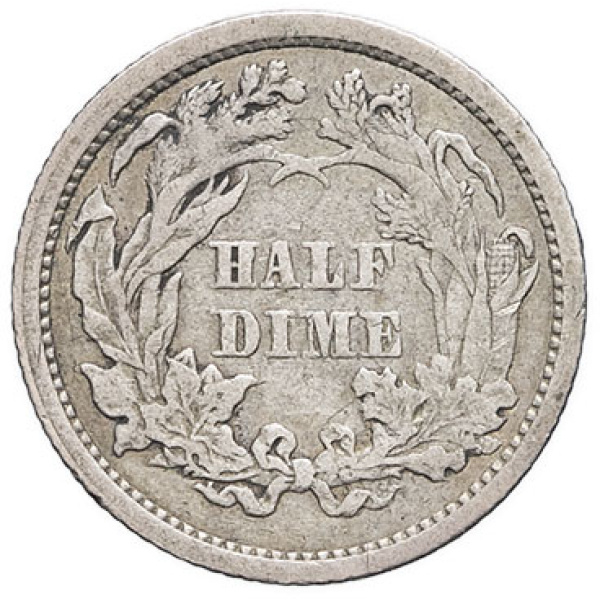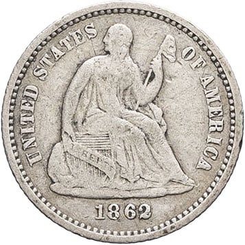 - UNITED STATES OF AMERICA République fédérale des États-Unis d’Amérique (1776-à nos jours). Demi-dime, Liberté assise, légende à l’avers (Liberty seated half dime, legend obverse) 1862, Philadelphie.