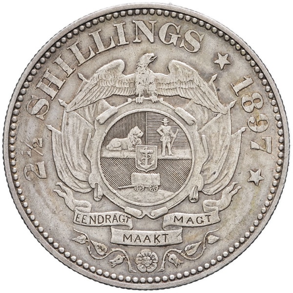 - SOUTH AFRICA Afrique du sud (République d’). 2 1/2 shillings, Paul Kruger 1897, Pretoria.