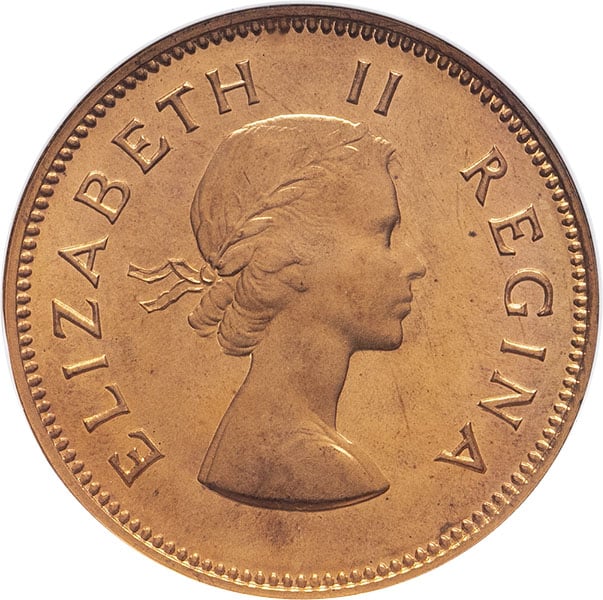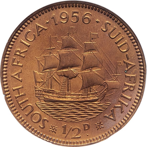 - SOUTH AFRICA Élisabeth II (1952-2022). 1/2 penny, Flan bruni (PROOF) 1956.