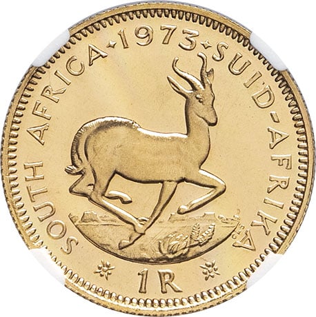 - SOUTH AFRICA Afrique du sud (République d’). 1 rand, Jan van Riebeeck, Flan bruni (PROOF) 1973, Pretoria.
