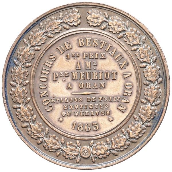 Attribution en relief : 1er PRIX A Mr Pre MEURIOT A ORAN ÉTALONS DE TRAIT EXOTIQUES OU DERIVÉS.