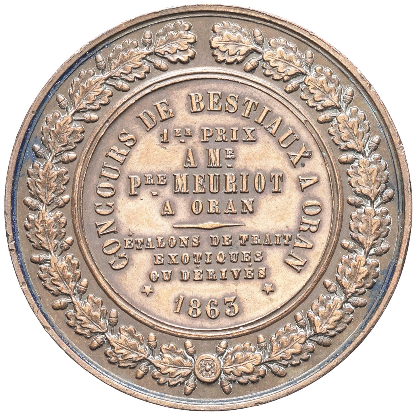 - ALGERIA Second Empire / Napoléon III (1852-1870). Médaille, concours de bestiaux à Oran, par Pingret 1863, Paris.