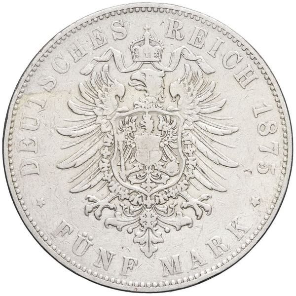 - GERMANY Bade, Frédéric I (1856-1907). 5 (fünf) mark 1875, G, Karlsruhe.