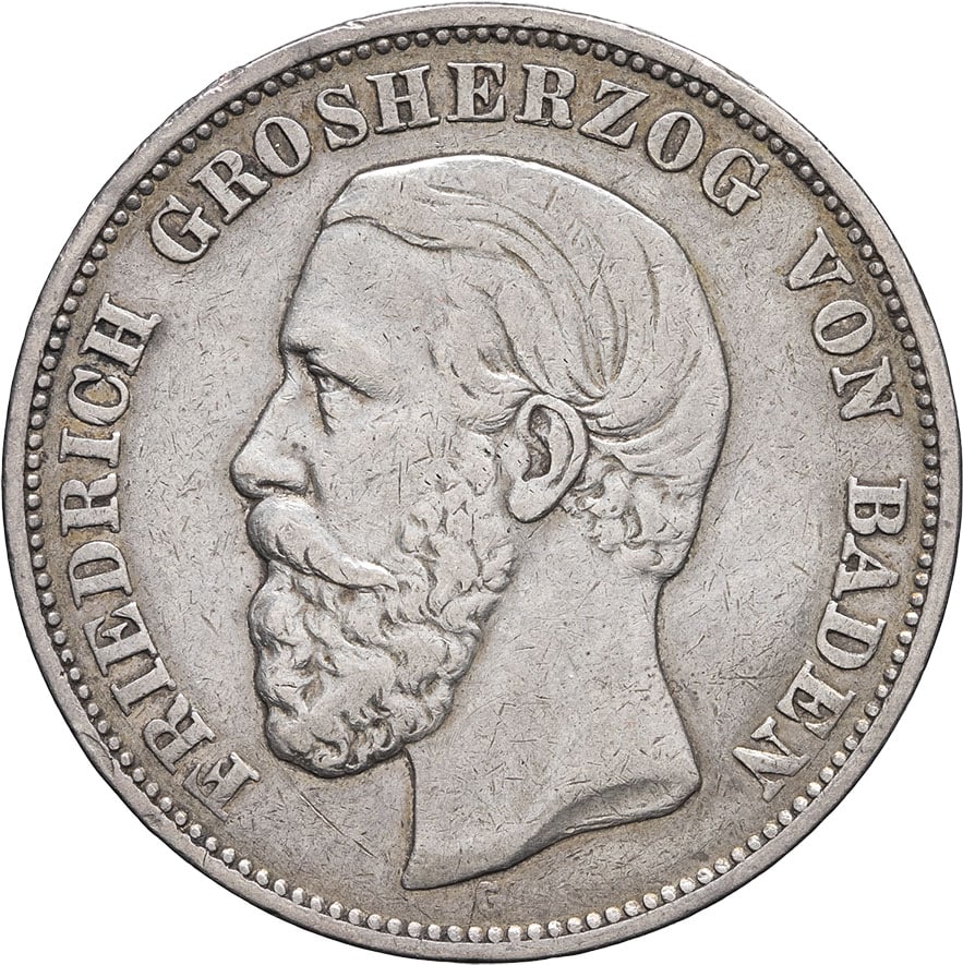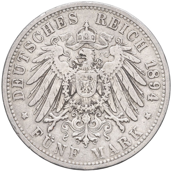 - GERMANY Bade, Frédéric I (1856-1907). 5 (fünf) mark 1894, G, Karlsruhe.