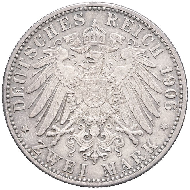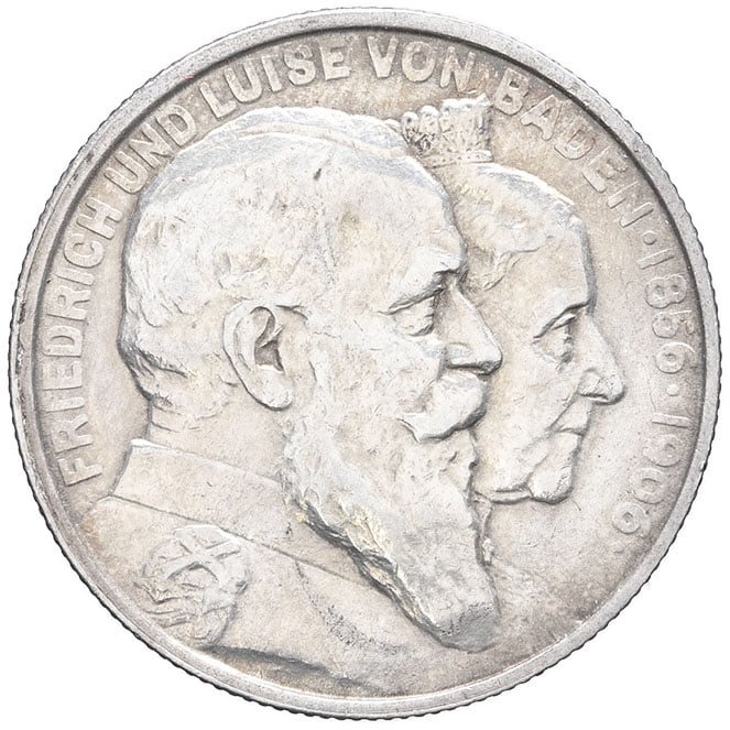 - GERMANY Bade, Frédéric I (1856-1907). 2 (zwei) mark, noces d’or 1906, Karlsruhe.