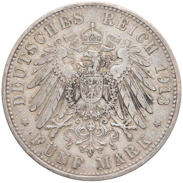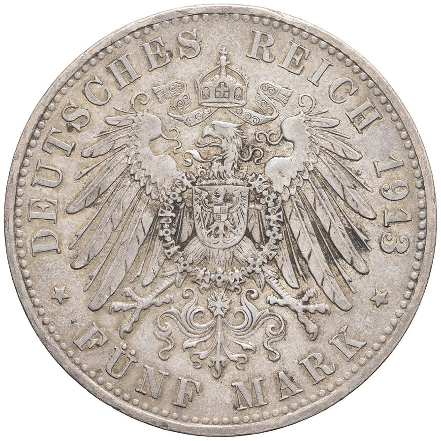 - GERMANY Bavière, Otto (1886-1913). 5 (fünf) mark 1913, D, Munich.
