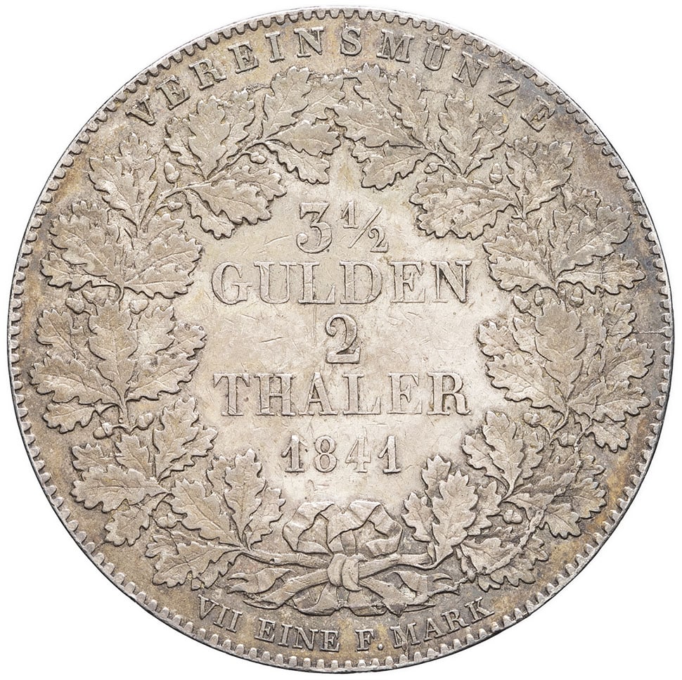 - GERMANY Francfort (ville libre de). 2 thalers ou 3 1/2 florins 1841, Francfort-sur-le-Main.