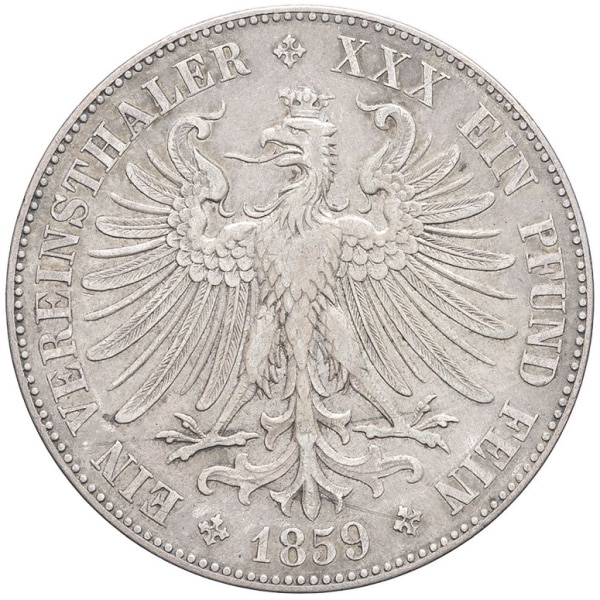 - GERMANY Francfort (ville libre de). Thaler 1859, Francfort-sur-le-Main.