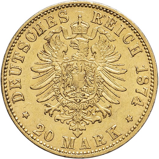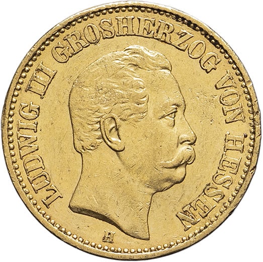 - GERMANY Hesse-Darmstadt, Louis III (1848-1877). 20 mark 1874, H, Darmstadt.