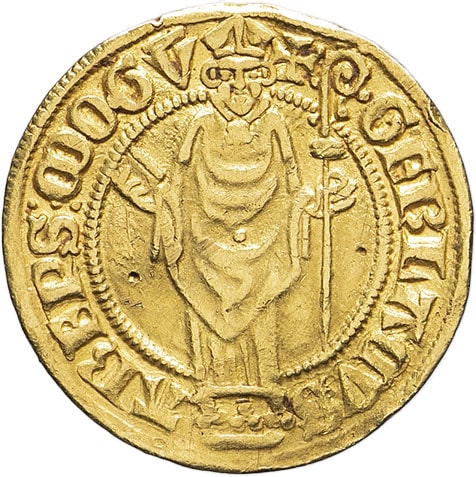 - GERMANY Mayence (archevêché de), Gerlier (ou Gerlac) de Nassau (1346-1371). Florin d’or ND (1365-1371), Bingen.
