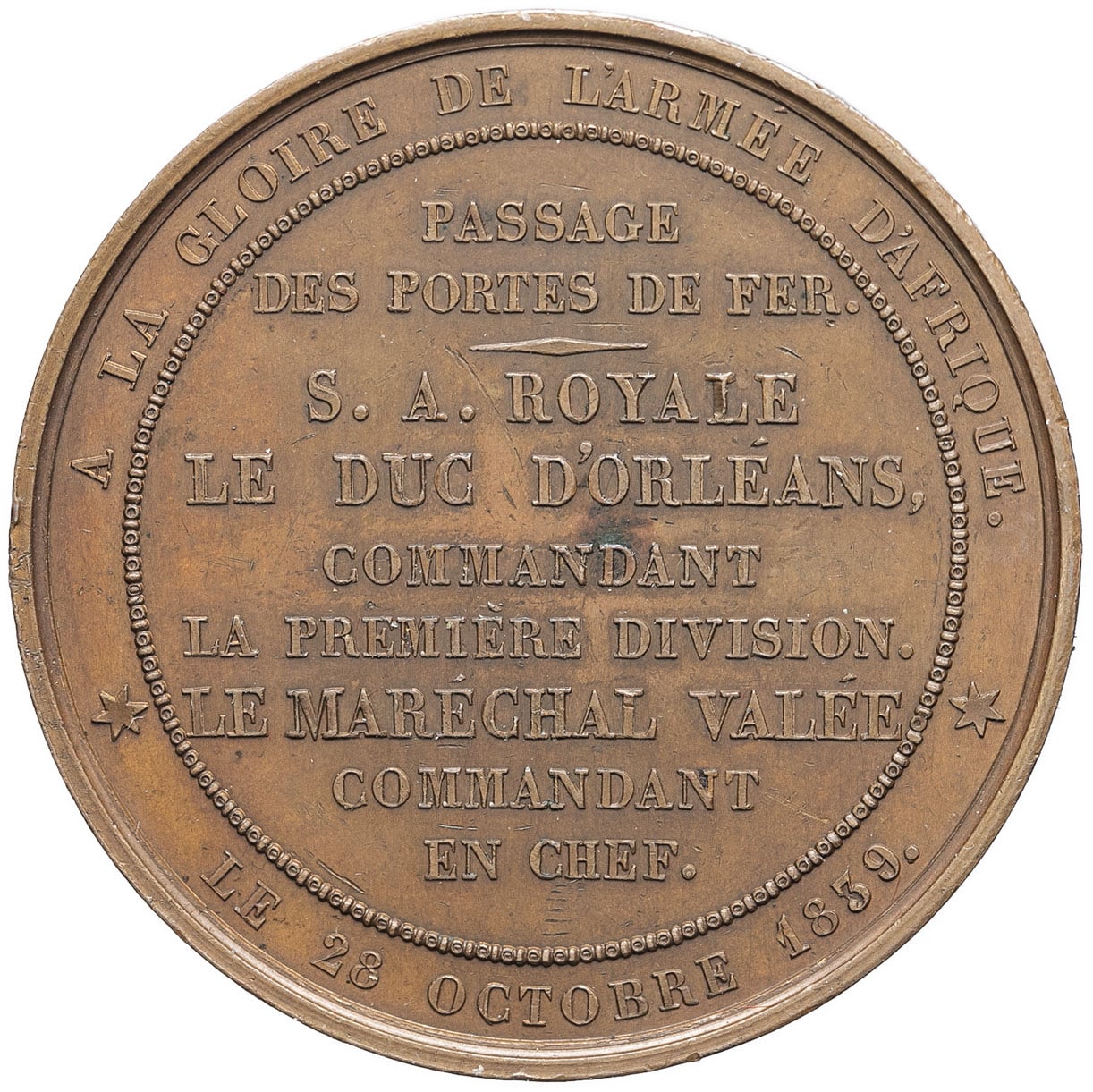 - ALGERIA Louis-Philippe Ier (1830-1848). Médaille, Ferdinand-Philippe d’Orléans prince de Joinville, à la gloire de l’Armée d’Afrique, par Borrel 1839 (1845-1848), Paris.