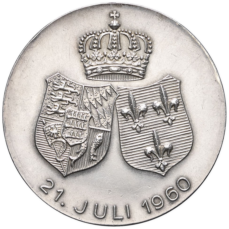 - GERMANY Wurtemberg, Charles duc héréditaire (1959-1975). Médaille, mariage de Charles duc héréditaire de Wurtemberg et Diane d’Orléans, par Fahrner 1960.