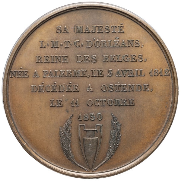 - BELGIUM Léopold Ier (1831-1865). Médaille, mort de Louise-Marie d’Orléans reine des Belges, par Borrel 1837 (1850), Paris.