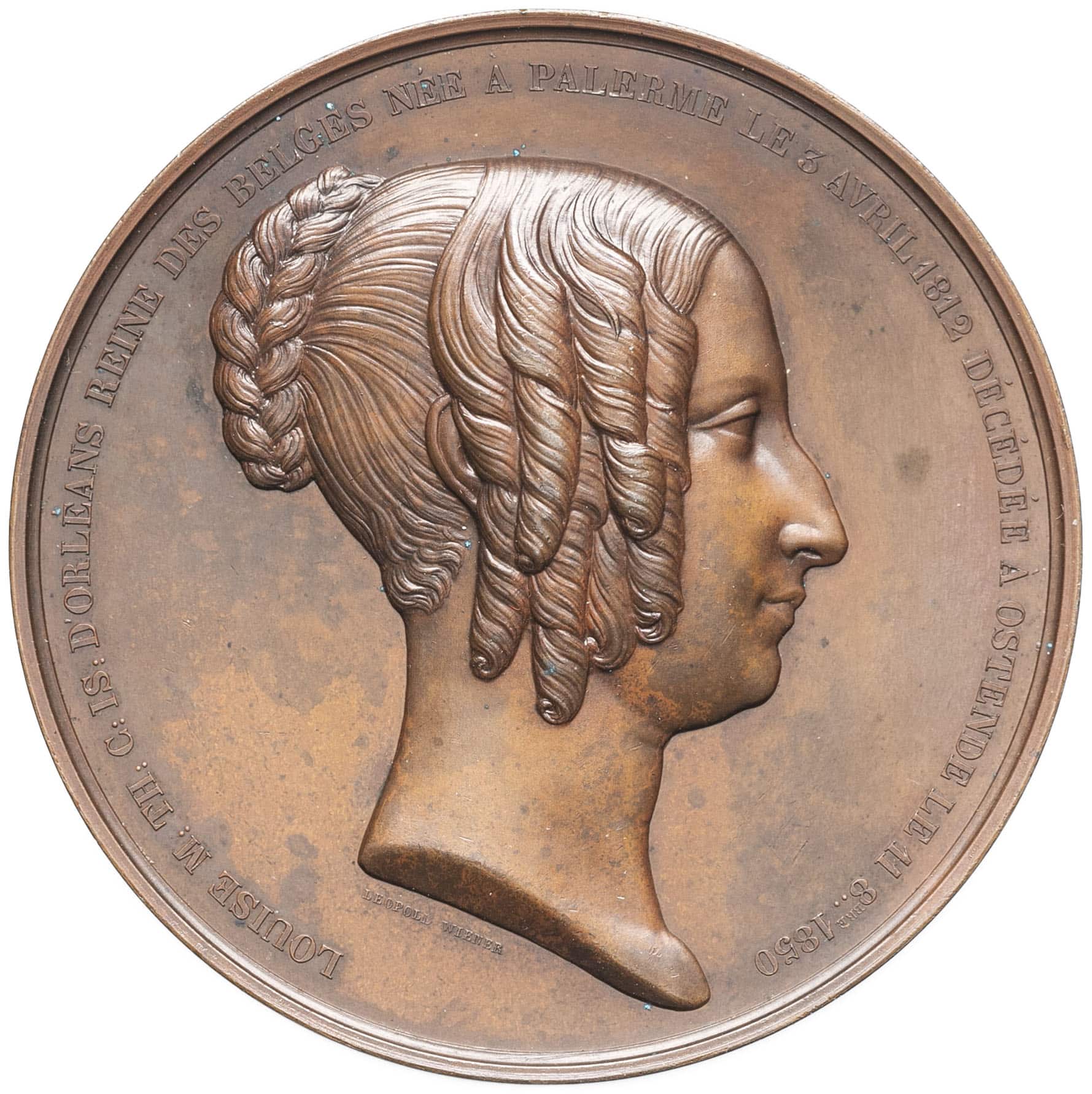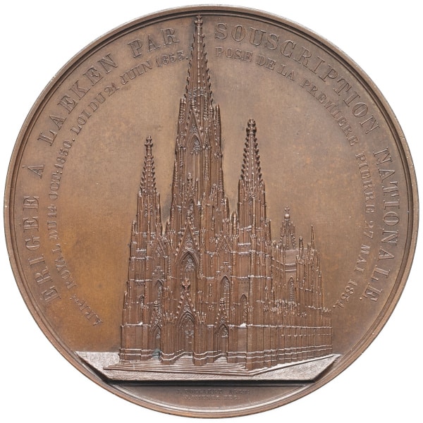 - BELGIUM Léopold Ier (1831-1865). Médaille, Louise-Marie d’Orléans, pose de la première pierre de la cathédrale de Laeken, par Wiener 1854, Bruxelles.