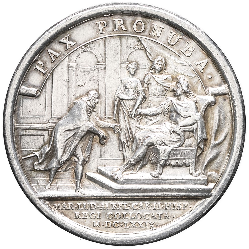 - FRANCE / ROYAL Louis XIV (1643-1715). Médaille, mariage de Marie-Louise d’Orléans et Charles II d’Espagne, par Mauger 1679, Paris.