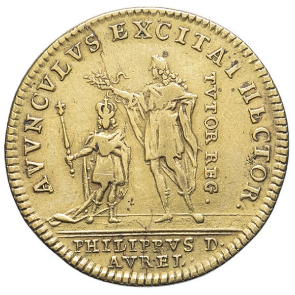 - FRANCE / ROYAL Louis XV (1715-1774). Jeton, minorité de Louis XV et régence de Philippe II duc d’Orléans, d’après Vestner ND (1715), Nuremberg.