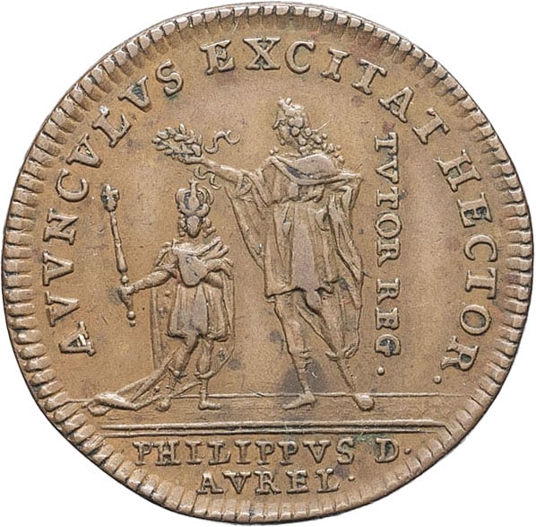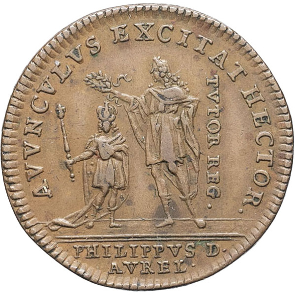 - FRANCE / ROYAL Louis XV (1715-1774). Jeton, minorité de Louis XV et régence de Philippe II duc d’Orléans, d’après Vestner ND (1715), Nuremberg.