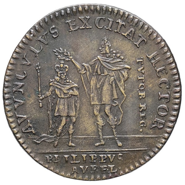 - FRANCE / ROYAL Louis XV (1715-1774). Jeton, minorité de Louis XV et régence de Philippe II duc d’Orléans, d’après Vestner ND (1715), Nuremberg.