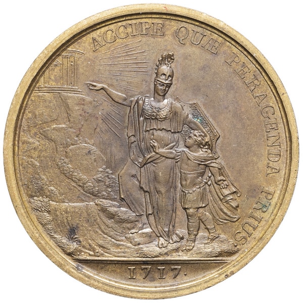 - FRANCE / ROYAL Louis XV (1715-1774). Médaille, le Régent Philippe II duc d’Orléans, l’éducation du Roi, par Duvivier 1717 (frappe postérieure), Paris.