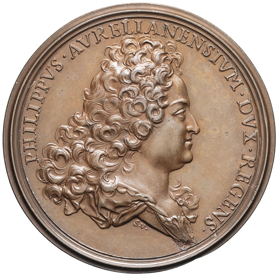- FRANCE / ROYAL Louis XV (1715-1774). Médaille, le Régent Philippe II duc d’Orléans, victoires françaises, par Saint Urbain 1720, Nancy.