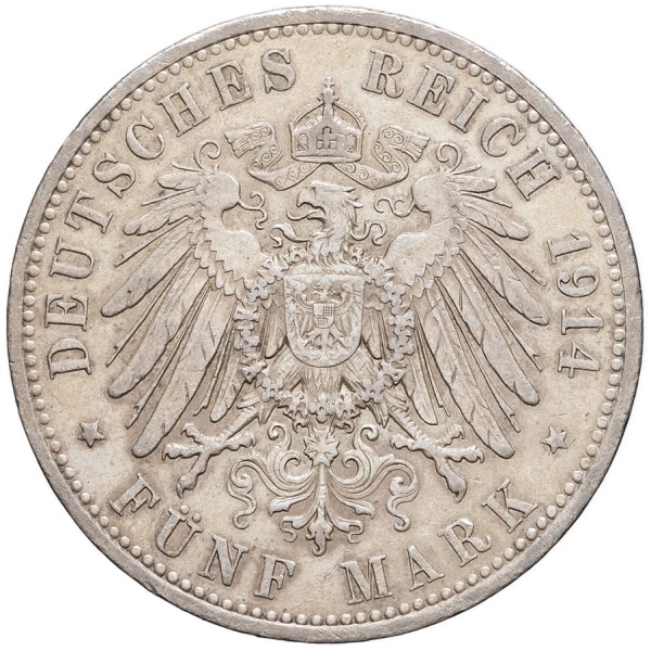- GERMANY Prusse, Guillaume II (1888-1918). 5 (fünf) mark 1914, A, Berlin.