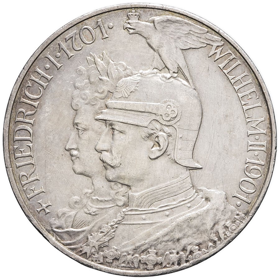 - GERMANY Prusse, Guillaume II (1888-1918). 5 (fünf) mark, bicentenaire du Royaume de Prusse 1901, A, Berlin.