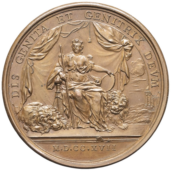 - FRANCE / ROYAL Louis XV (1715-1774). Médaille, 65e anniversaire de la princesse Palatine Élisabeth-Charlotte de Bavière duchesse d’Orléans, par M. Rög 1717.