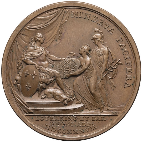 - FRANCE / ROYAL Louis XV (1715-1774). Médaille, rattachement des duchés de Lorraine et de Bar à la France, par Duvivier 1737, Paris.