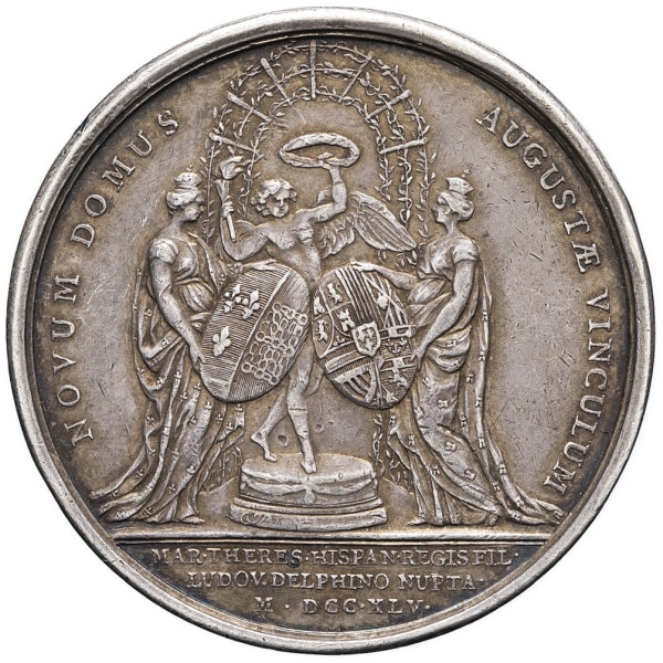 - FRANCE / ROYAL Louis XV (1715-1774). Médaille, mariage du dauphin Louis de France et Marie-Thérèse d’Espagne, par Marteau 1745, Paris.