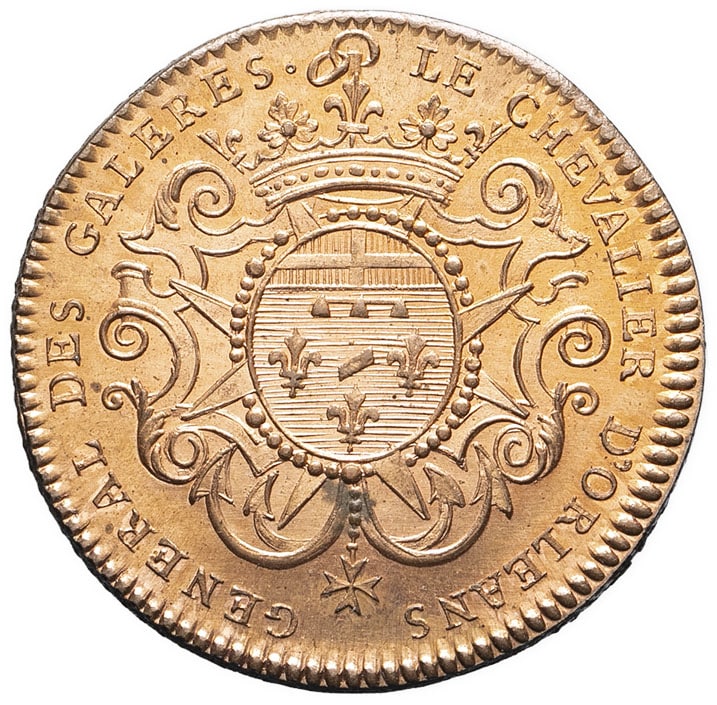 - FRANCE / ROYAL Louis XV (1715-1774). Jeton de Jean-Philippe d’Orléans, général des Galères de France 1740 (frappe XIXe s.), Paris.