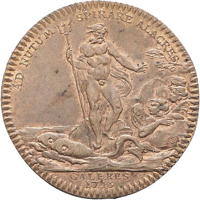 - FRANCE / ROYAL Louis XV (1715-1774). Jeton de Jean-Philippe d’Orléans, général des Galères de France 1745 (frappe XIXe s.), Paris.
