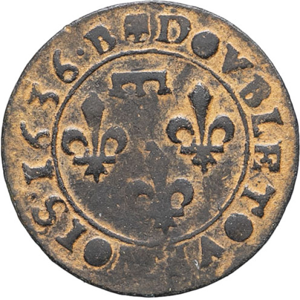 - FRANCE / FEUDAL Dombes, Gaston d’Orléans (1628-1657). Double tournois 1636 B, Trévoux.