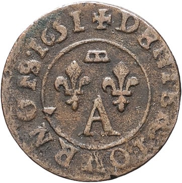 - FRANCE / FEUDAL Dombes, Gaston d’Orléans (1628-1657). Denier tournois 1651, A, Trévoux.