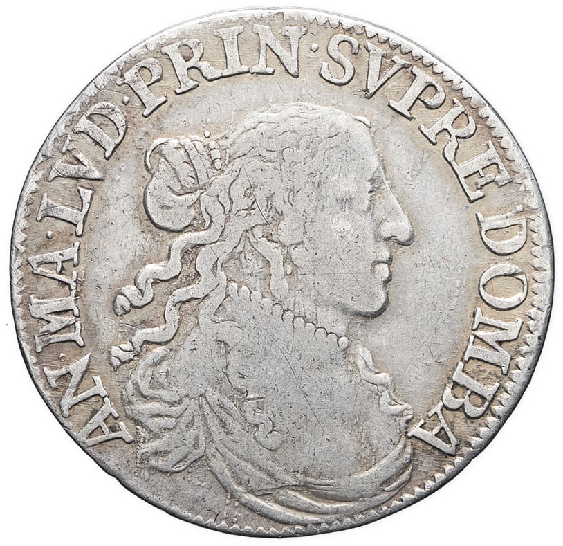 - FRANCE / FEUDAL Dombes, Anne-Marie-Louise d’Orléans (1650-1693). Demi-écu de 30 sols 1673, A, Trévoux.