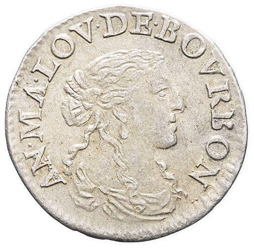 - FRANCE / FEUDAL Dombes, Anne-Marie-Louise d’Orléans (1650-1693). Douzième d’écu de 5 sols (luigino) 1668/7, A, Trévoux.