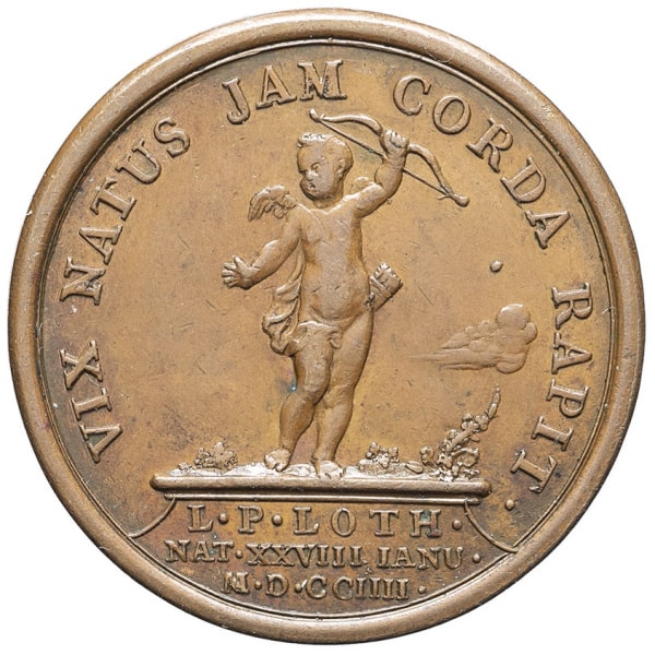 - FRANCE / FEUDAL Lorraine (duché de), Léopold Ier (1690-1729). Médaille, naissance de Louis de Lorraine, héritier présomptif de Lorraine et Bar le 28 janvier 1704, par Mauger 1704, Paris.