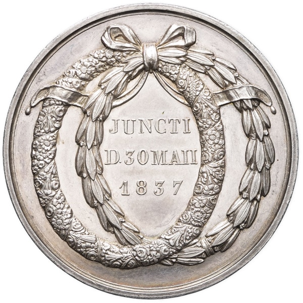 - Louis-Philippe Ier (1830-1848). Médaille, mariage de Ferdinand-Philippe duc d’Orléans et Hélène de Mecklenbourg-Schwerin, par Brandt 1837.