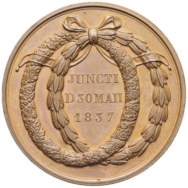 - Louis-Philippe Ier (1830-1848). Médaille, mariage de Ferdinand-Philippe duc d’Orléans et Hélène de Mecklenbourg-Schwerin, par Brandt 1837.