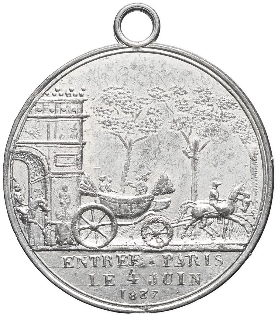 - Louis-Philippe Ier (1830-1848). Médaille, entrée à Paris de Ferdinand-Philippe duc d’Orléans et son épouse la princesse Hélène de Mecklenbourg-Schwerin le 4 juin 1837.