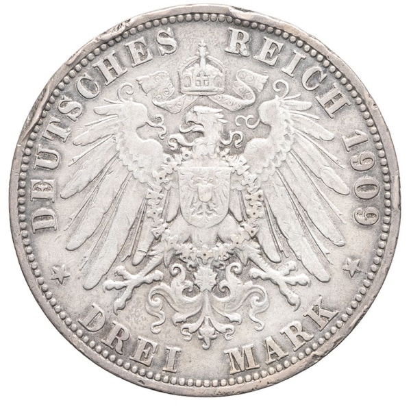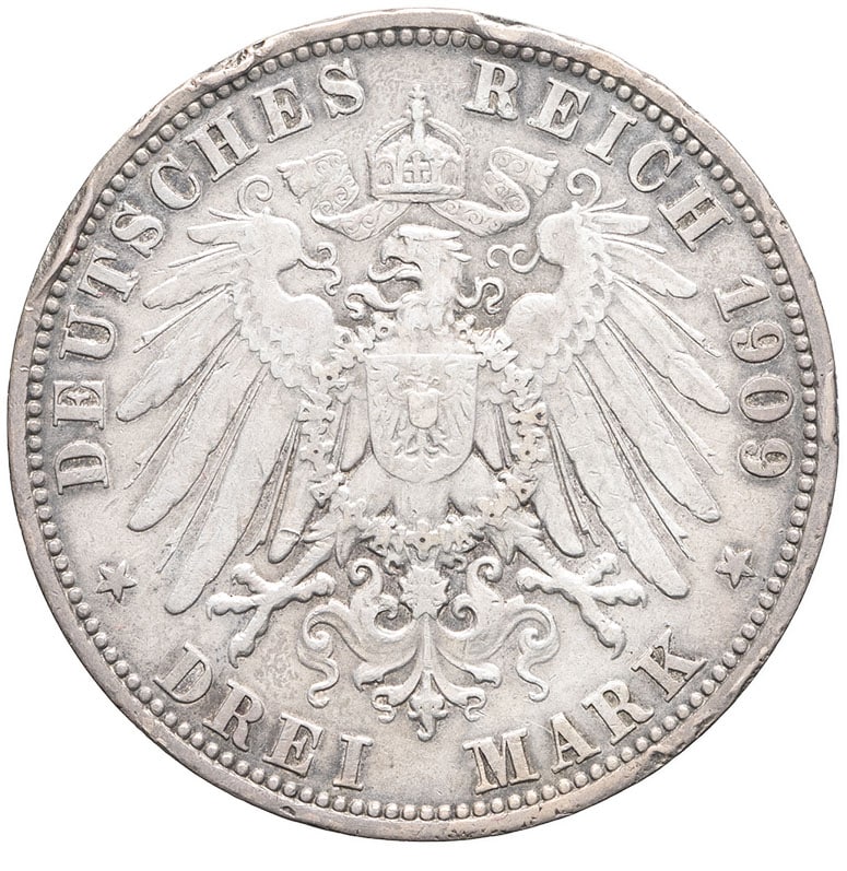 - GERMANY Schwarzbourg-Sondershausen, Charles-Gonthier (1880-1908). 3 (drei) mark, mort de Charles-Gonthier 1909, A, Berlin.