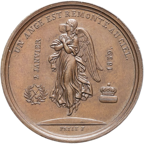 - Louis-Philippe Ier (1830-1848). Médaille, mort de Marie-Christine d’Orléans duchesse de Wurtemberg, par Petit 1839.