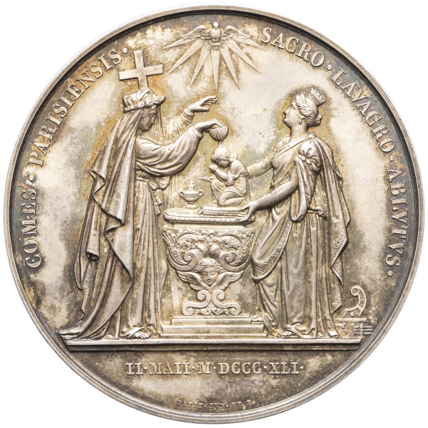 - Louis-Philippe Ier (1830-1848). Médaille, baptême de Louis-Philippe-Albert comte de Paris, par Petit 1841, Paris.